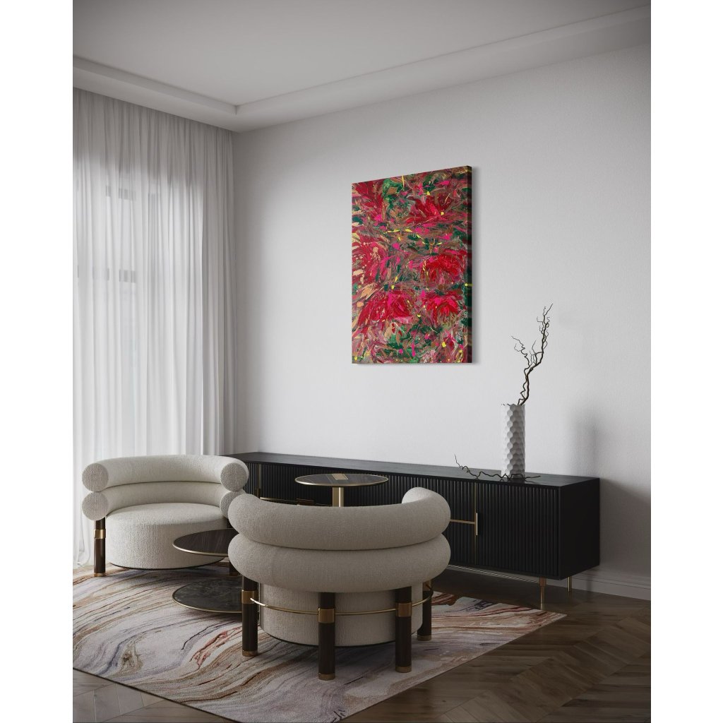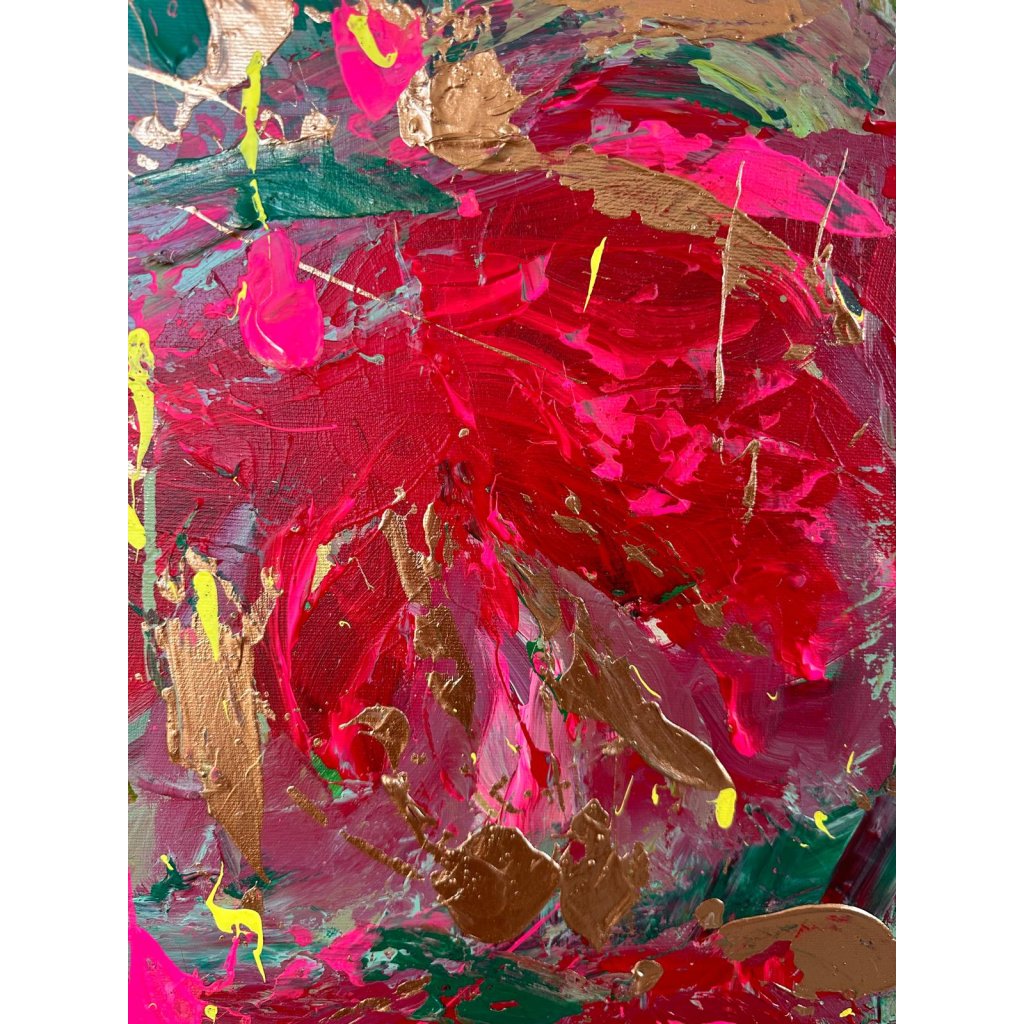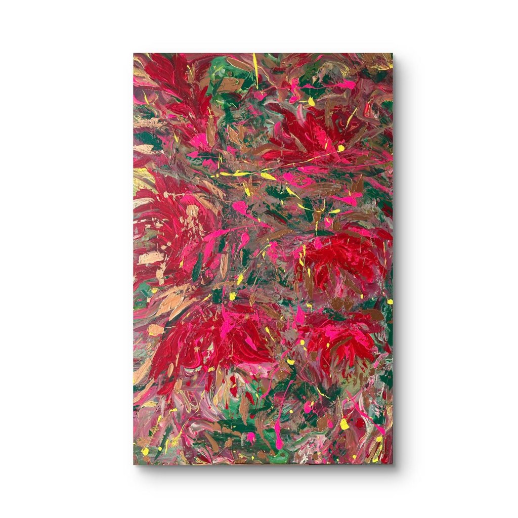 Obraz Begónie je výbuchem barevné radosti a divoké energie. Tato abstraktní kompozice přináší intenzivní hru sytých červených, růžových a zelených tónů, které evokují květy v plném rozkvětu. Název odkazuje na květinu, která je symbolem originality, živosti a emocí – právě takových, jaké obraz vyvolává.