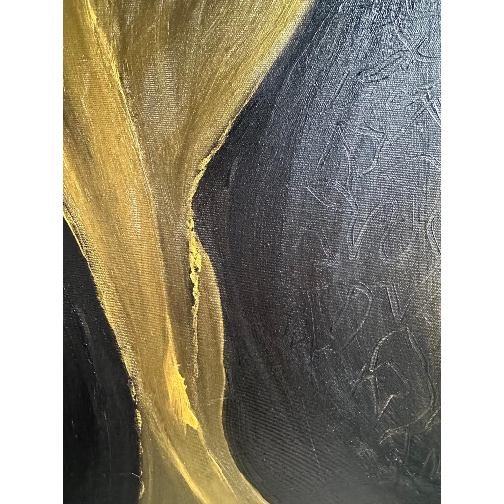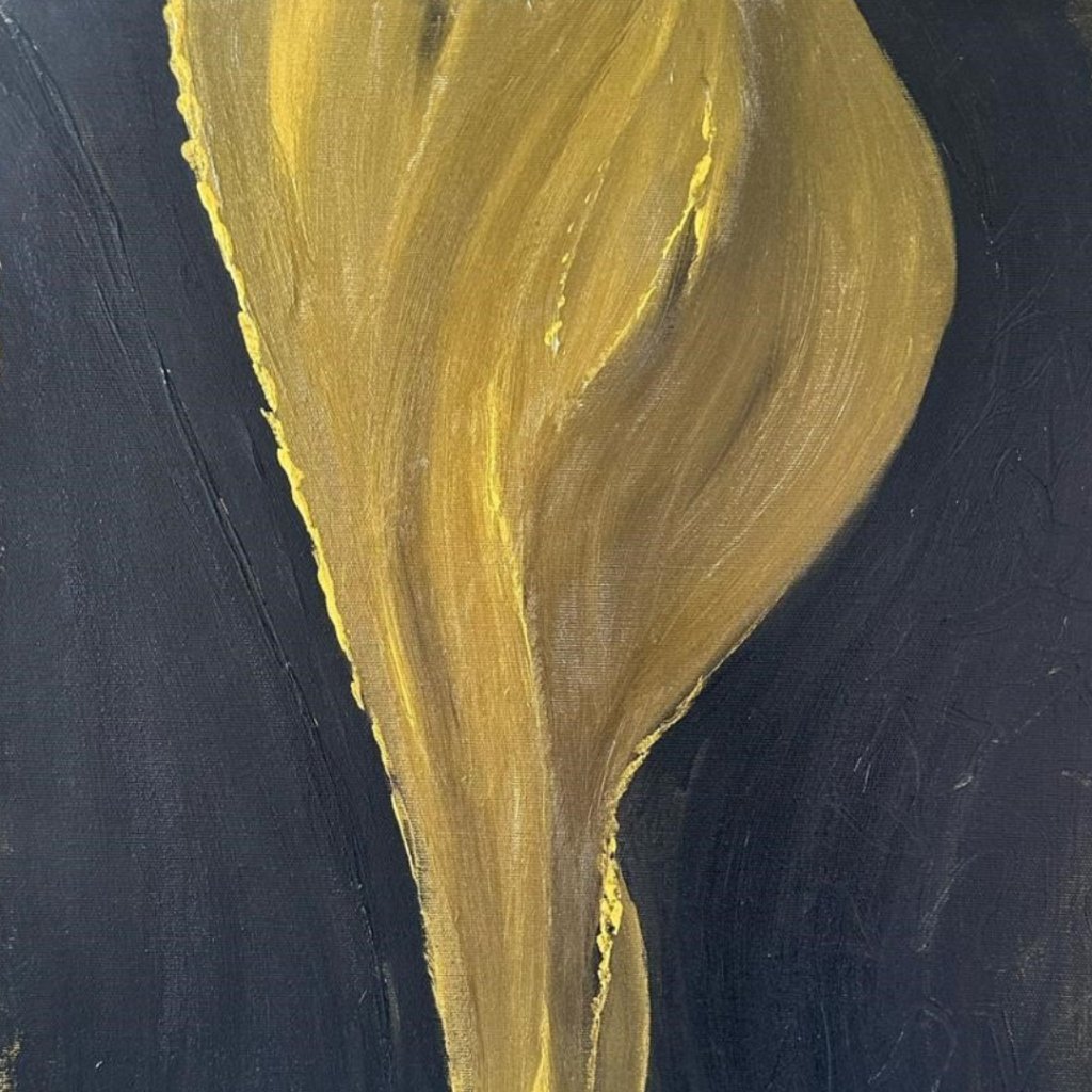 Každý tah barvy působí jako gesto – klidné, sebevědomé a hluboce zakořeněné v přirozenosti. Černá a zlatá zde nejsou jen kontrastem světla a tmy, ale také symbolem vnitřního i vnějšího světa, skrytých emocí a otevřeného pohybu.