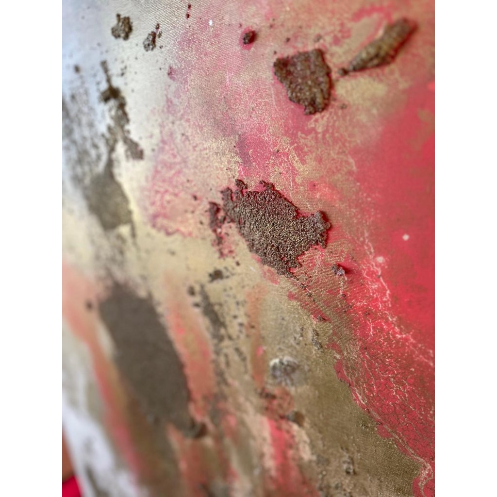 Technika: akryl, modelační pasta a strukturovaný písek na plátně