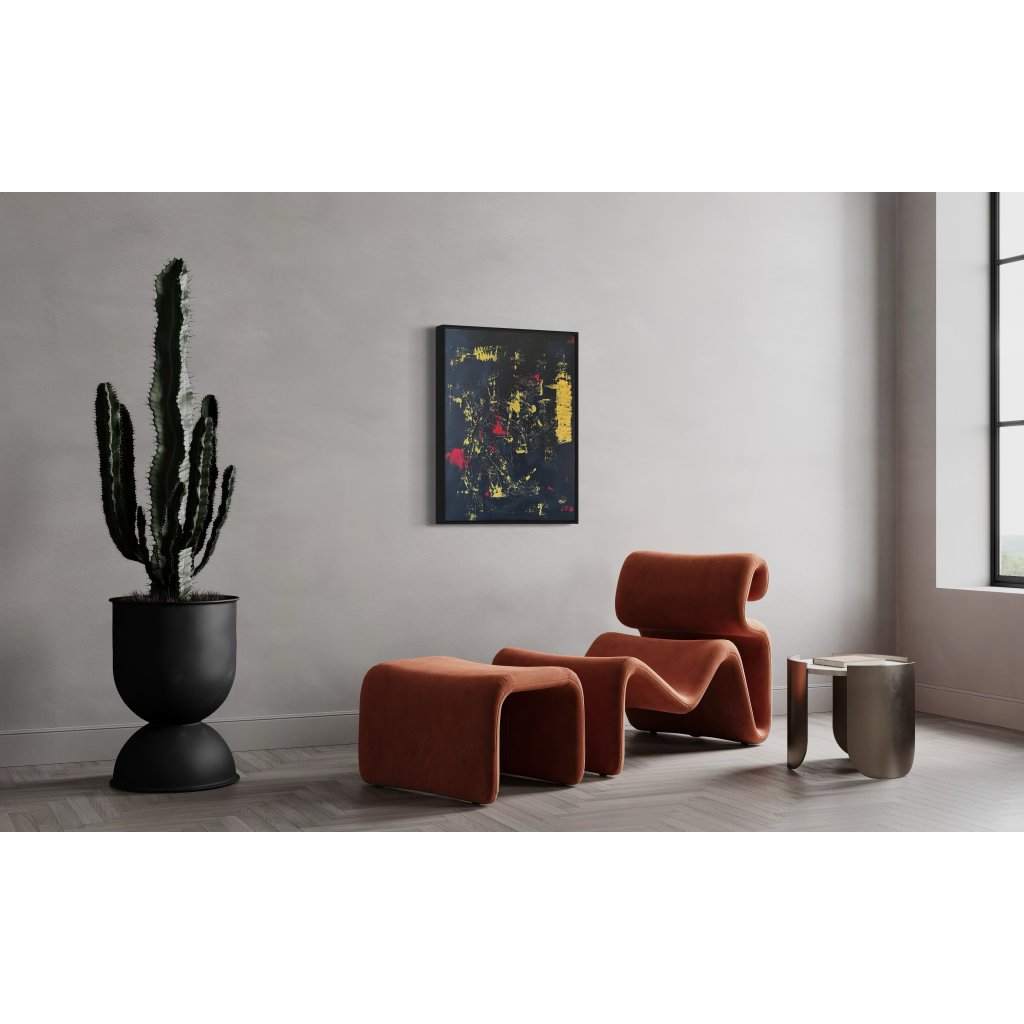 Druhá část série Noční tajemství přináší intenzivnější a dynamičtější výraz. Kompozice se nese v duchu temné noci, kterou prorážejí ostré záblesky žluté a rudé barvy. Tyto barevné kontrasty symbolizují proudy myšlenek, snů a emocí, které se v tichu noci derejí na povrch.
