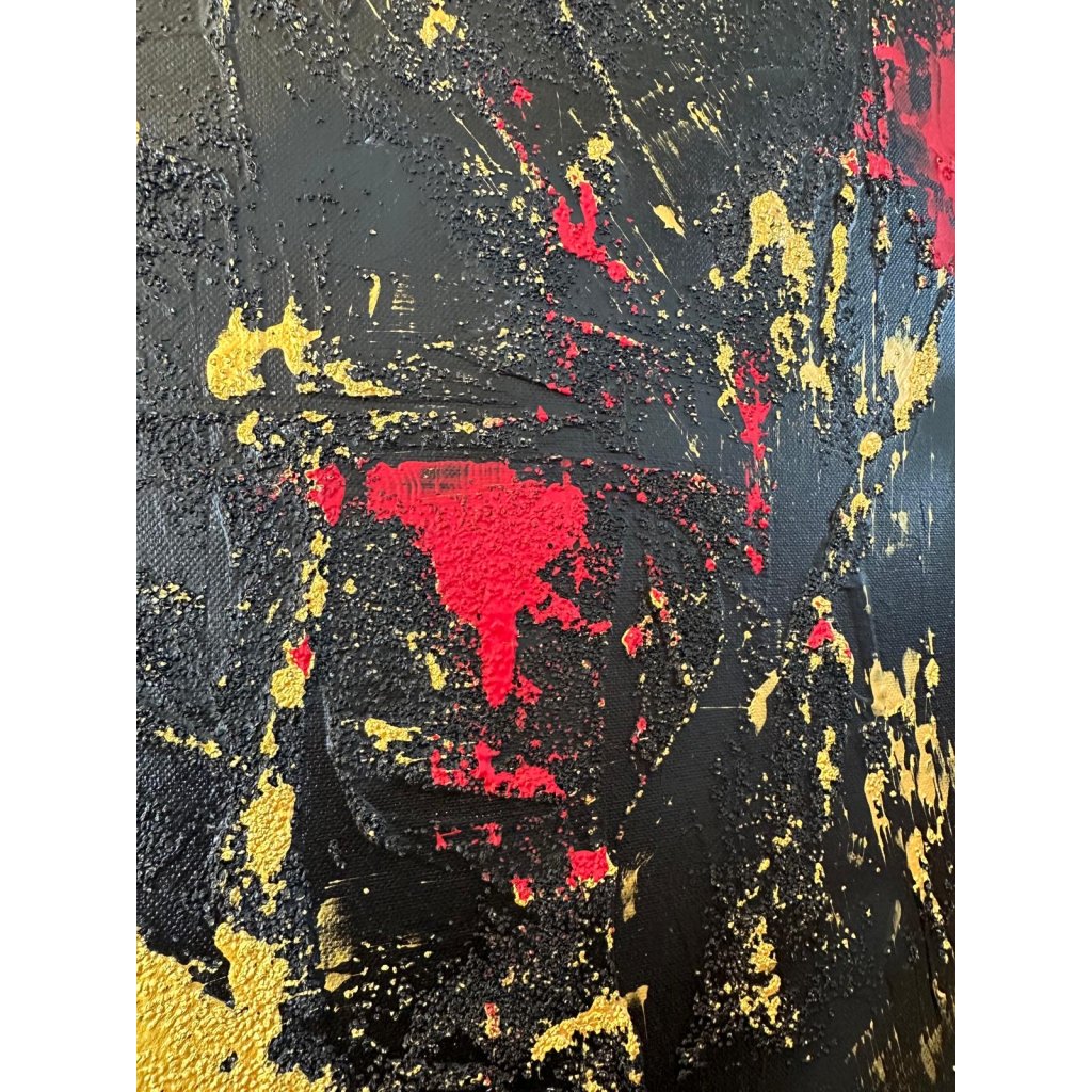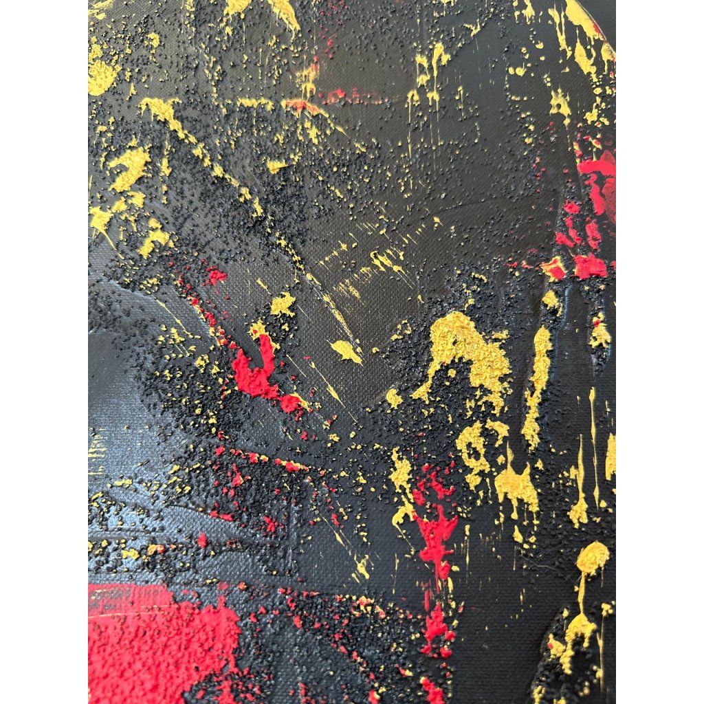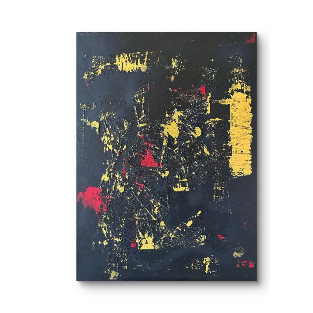 Strukturovaný povrch plátna evokuje vrstvy podvědomí, v nichž se ukrývají příběhy, jež nejsou na první pohled zřejmé. Žlutá zde reprezentuje vnitřní světlo, které se snaží proniknout skrze temnotu. Červená pak přináší pocit energie, vášně nebo možná neklidu, který narušuje klidný spánek.