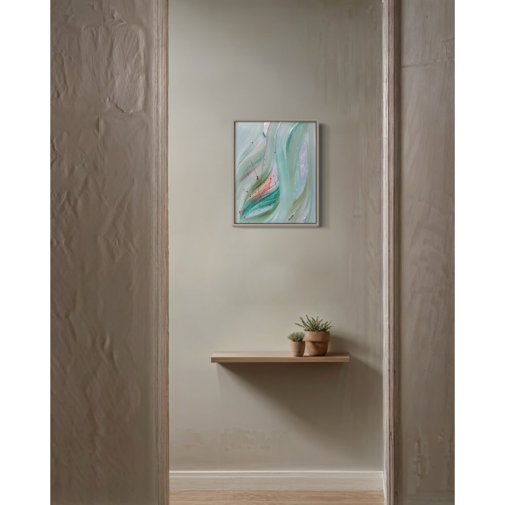 Kompozice je harmonická, éterická a plná pohybu. Vzniká pocit, že se díváme do lesa, který žije svým vlastním životem – tichým, jemným, ale plným síly a magie. Každý detail, každé zakřivení barvy nás vede hlouběji do fantazie.