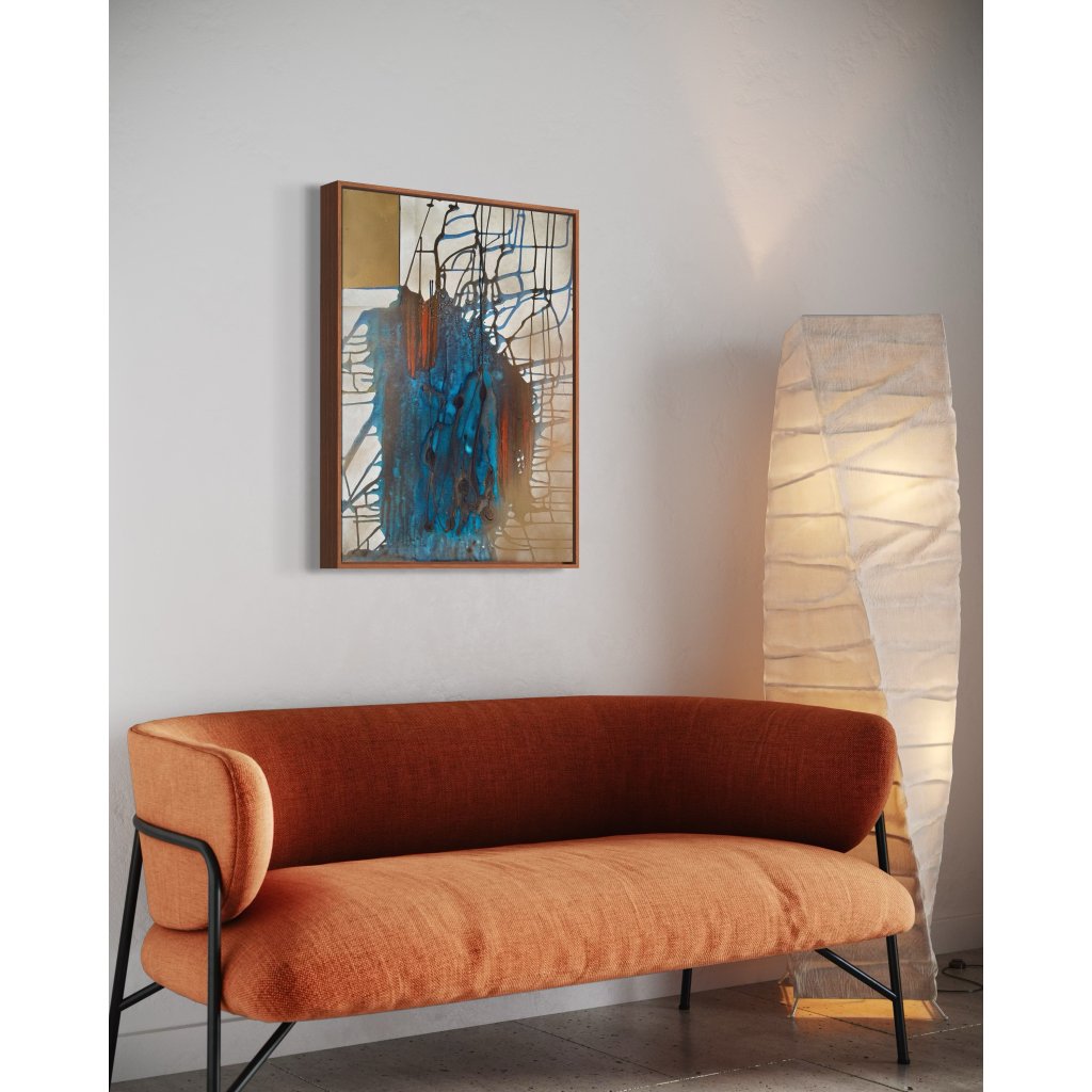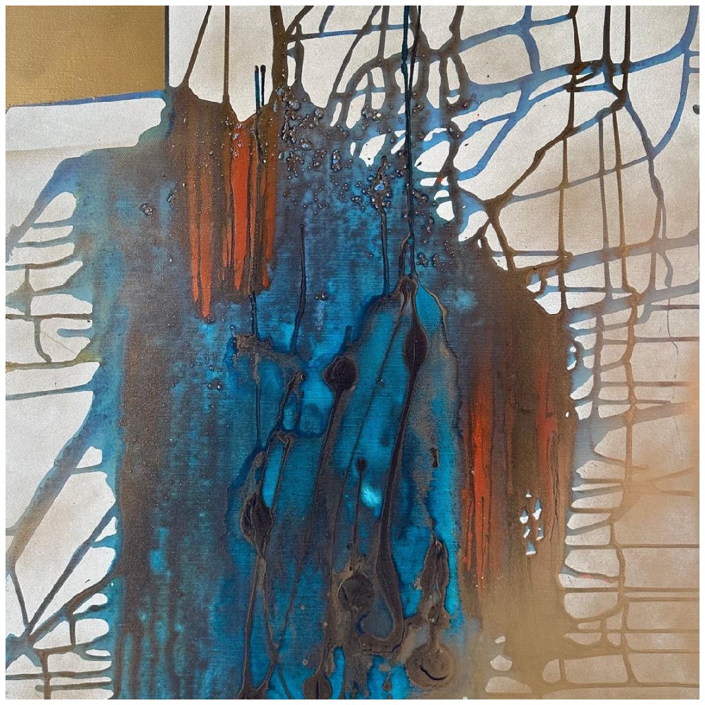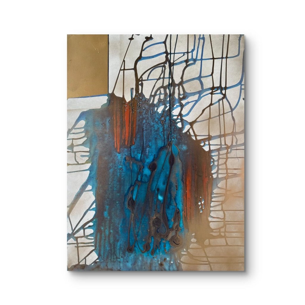 Zlatavé a měděné tóny kontrastují s chladnou hloubkou modři, což vytváří napětí mezi duchem a realitou, mezi svobodou a strukturou. Dílo vyvolává otázky o tom, co vše nás ve světě formuje, omezuje nebo tvaruje – a jak z těchto struktur vyvázat vlastní podstatu.