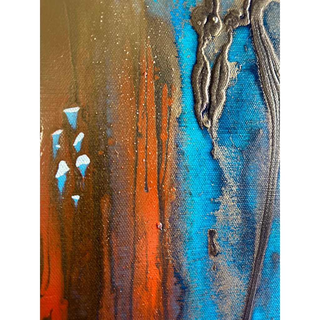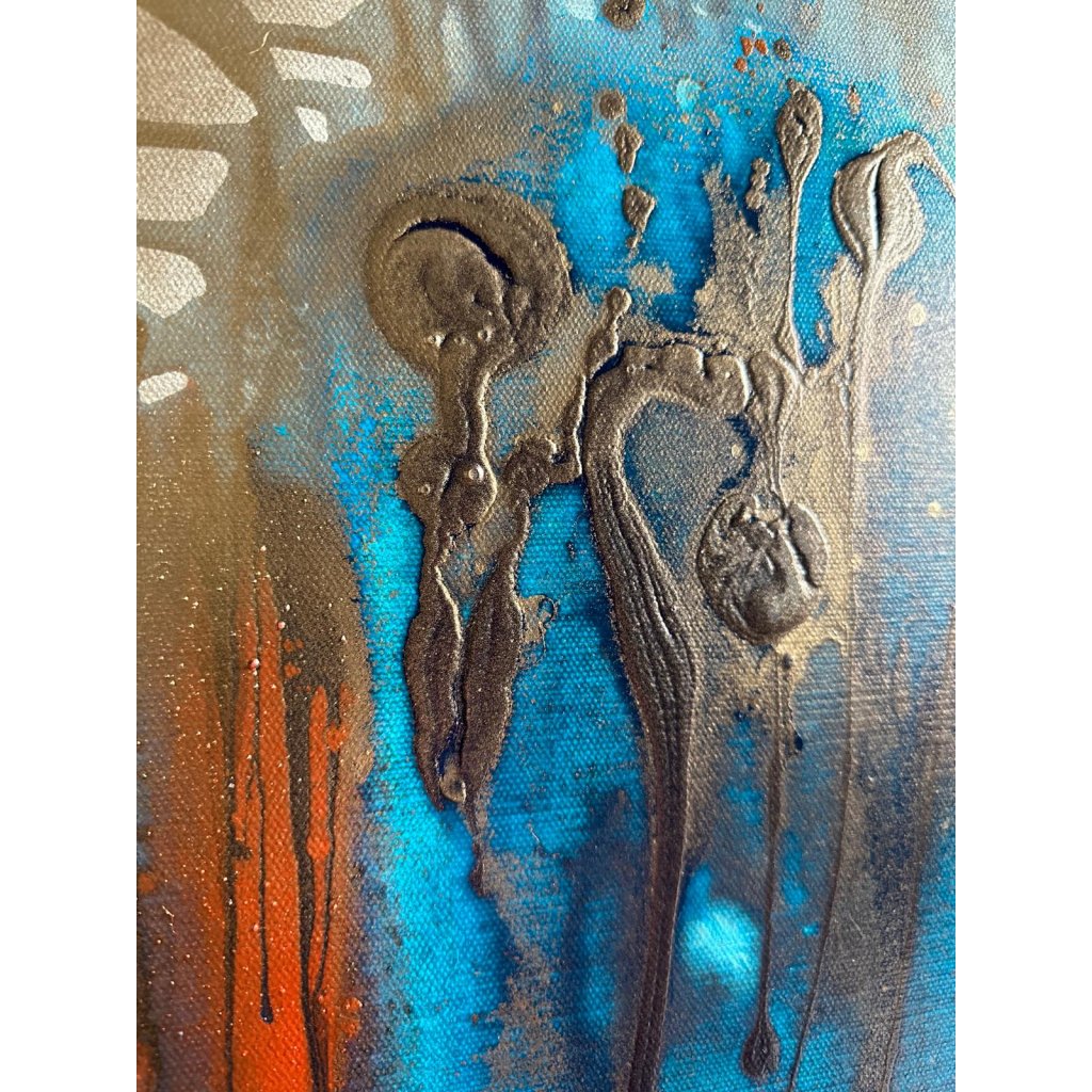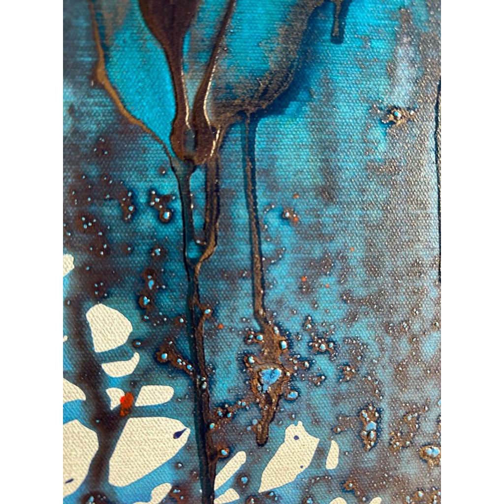 Zlatavé a měděné tóny kontrastují s chladnou hloubkou modři, což vytváří napětí mezi duchem a realitou, mezi svobodou a strukturou. Dílo vyvolává otázky o tom, co vše nás ve světě formuje, omezuje nebo tvaruje – a jak z těchto struktur vyvázat vlastní podstatu.