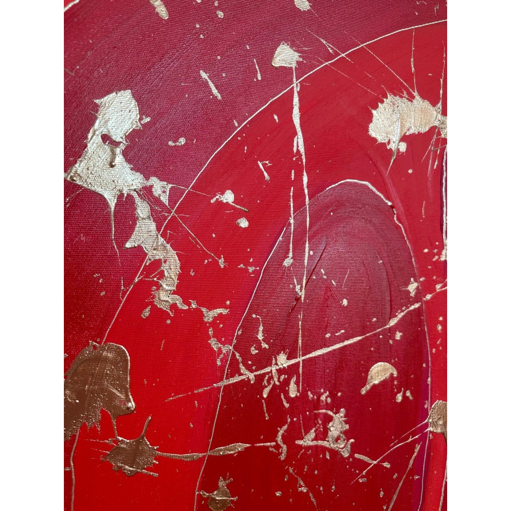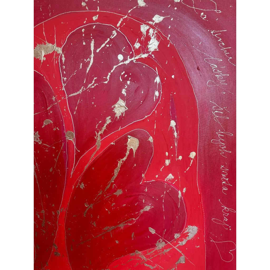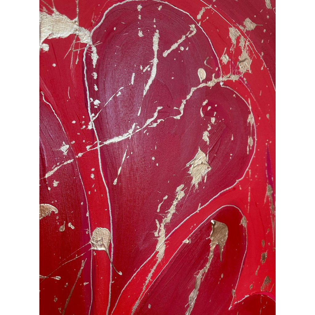 Tento obraz vznikl jako emotivní pocta hlubokému citu – lásce, která je spalující, něžná i zraňující zároveň. Dominantní červené srdce, rozdělené na tři části, symbolizuje různé fáze vztahu: vášeň, oddanost a ztrátu. Zlaté akcenty, vytvořené pravou zlatou fólií, připomínají, že i v bolesti se může zrodit krása – že i zlomené srdce může zářit.