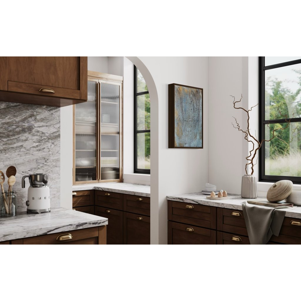 Obraz Zářivá Kalábrie zachycuje esenci jihu Itálie – oblast, kde se mořský vánek mísí s horkem slunce a historie prostupuje každým kamenem. Jemná struktura povrchu a přechody mezi zlatavou, modrošedou a pískovou barvou evokují atmosféru starobylých zdí omývaných časem, mořskou solí a paprsky zapadajícího slunce.
